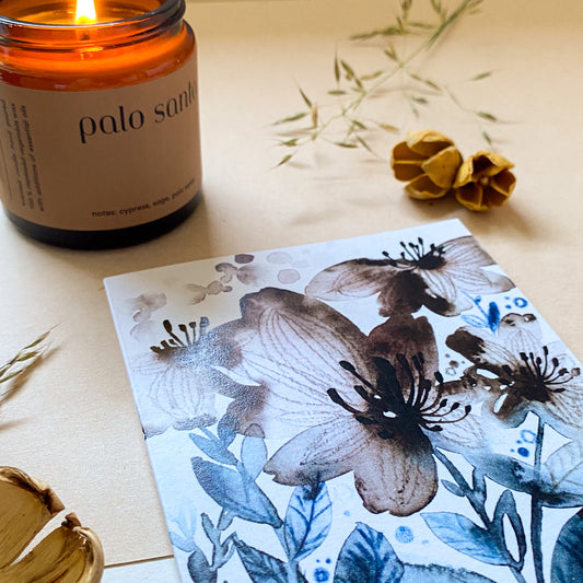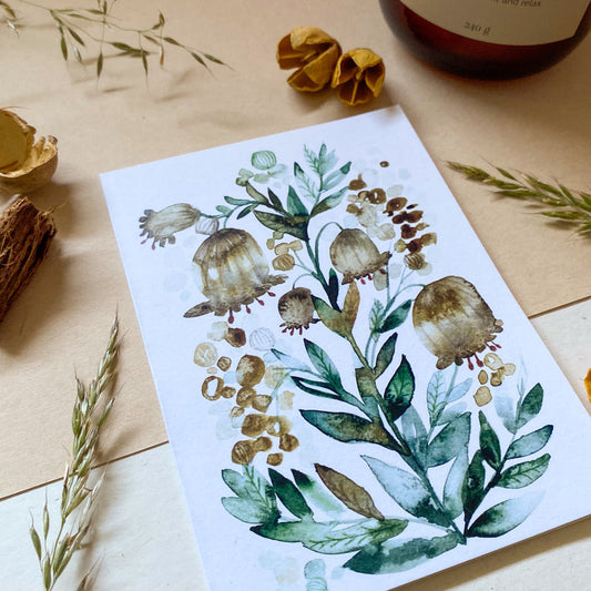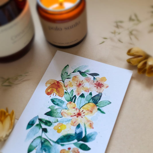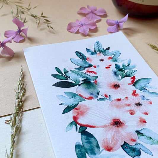 Voščilnica z ilustracijo cvetlic v akvarelni tehniki