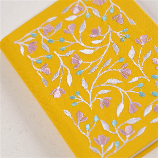 Rumena beležnica A6 z vezenino - mreža s pikami