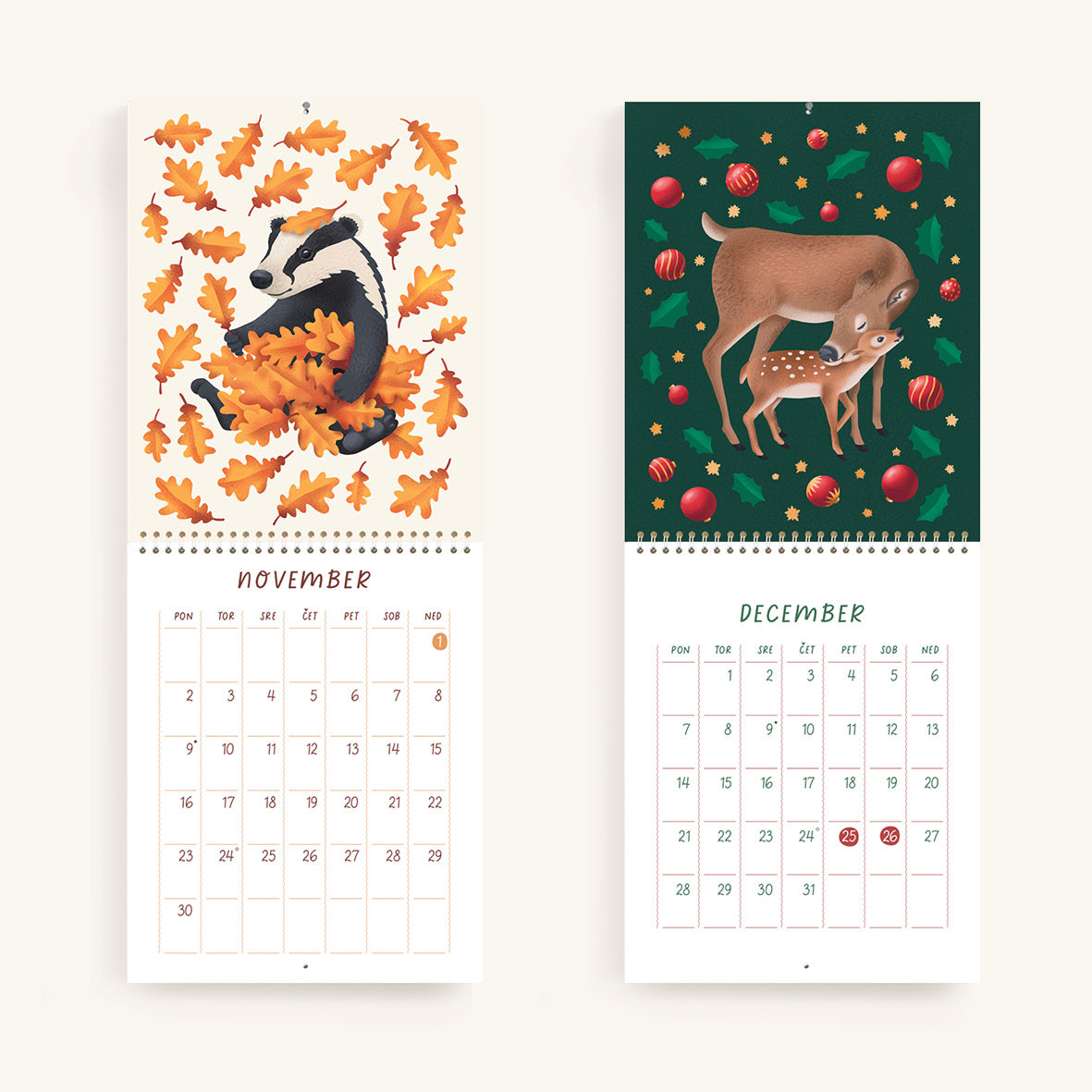 V koledarju Igrivi svet živali boste našli 13 ilustracij avtohtonih živalskih vrst. Koledar je namenjen vsem, ki radi raziskujejo in spoznavajo živalski svet.
