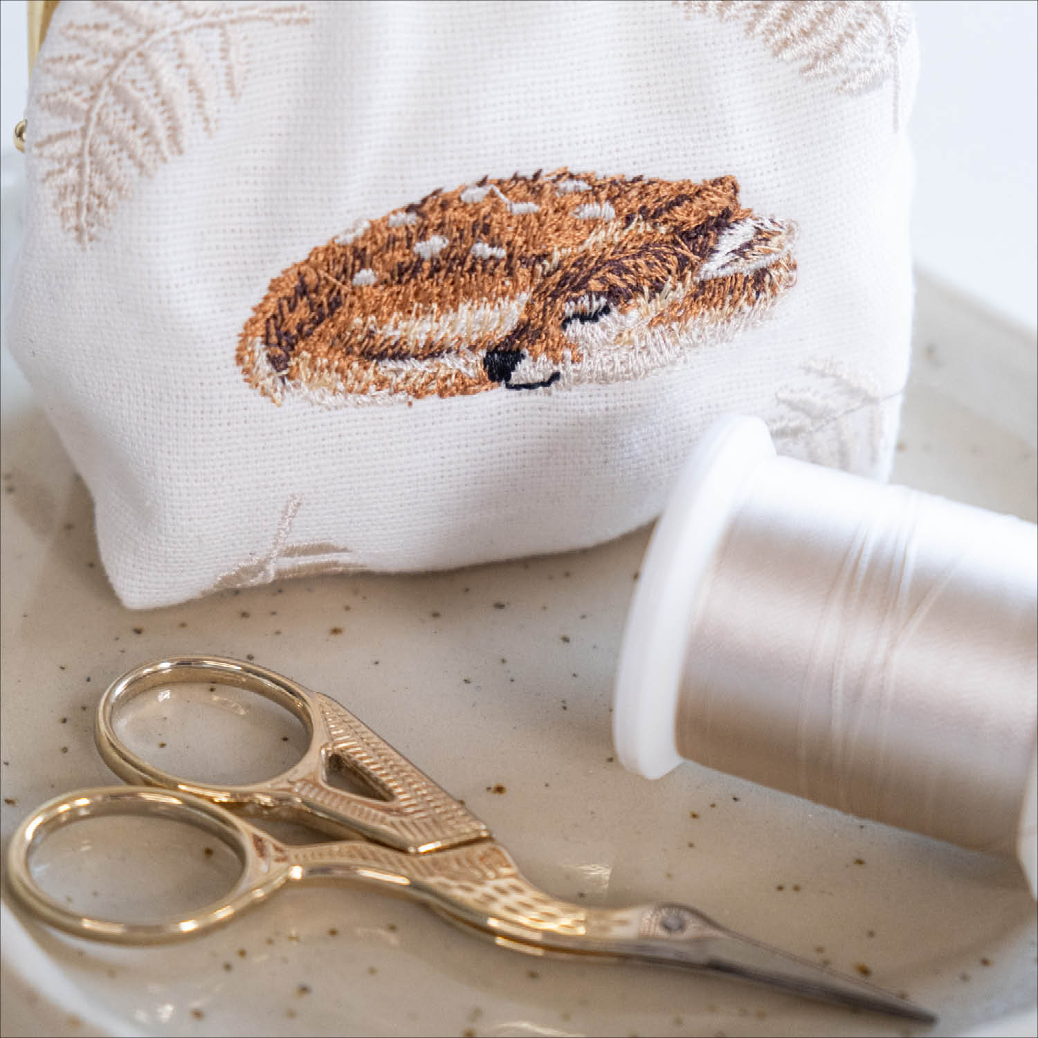 Torbica je nastala v domačem ateljeju – skrbno zašita s šivalnim strojem s strojno izdelano vezenino po ilustraciji Janje Baznik.